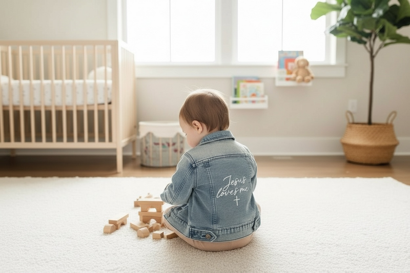 Jesus Loves Me Embroidered Denim Jacket