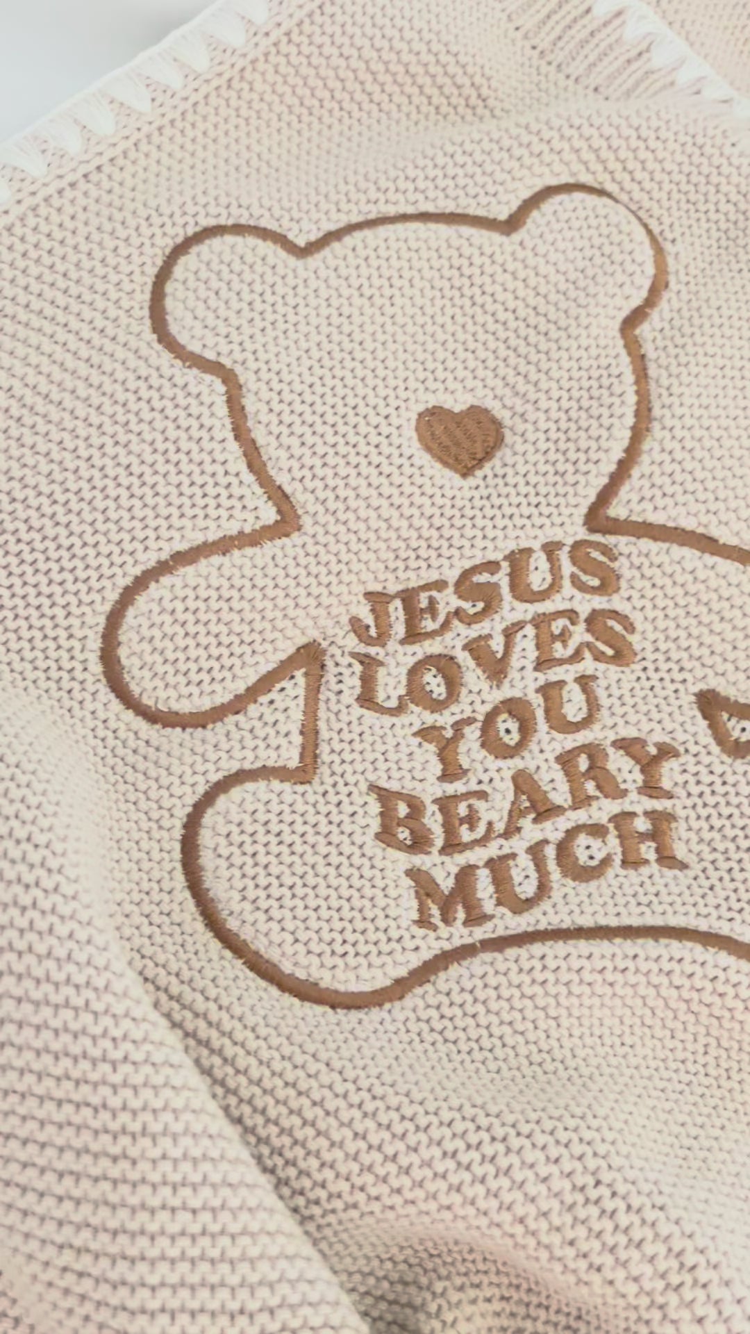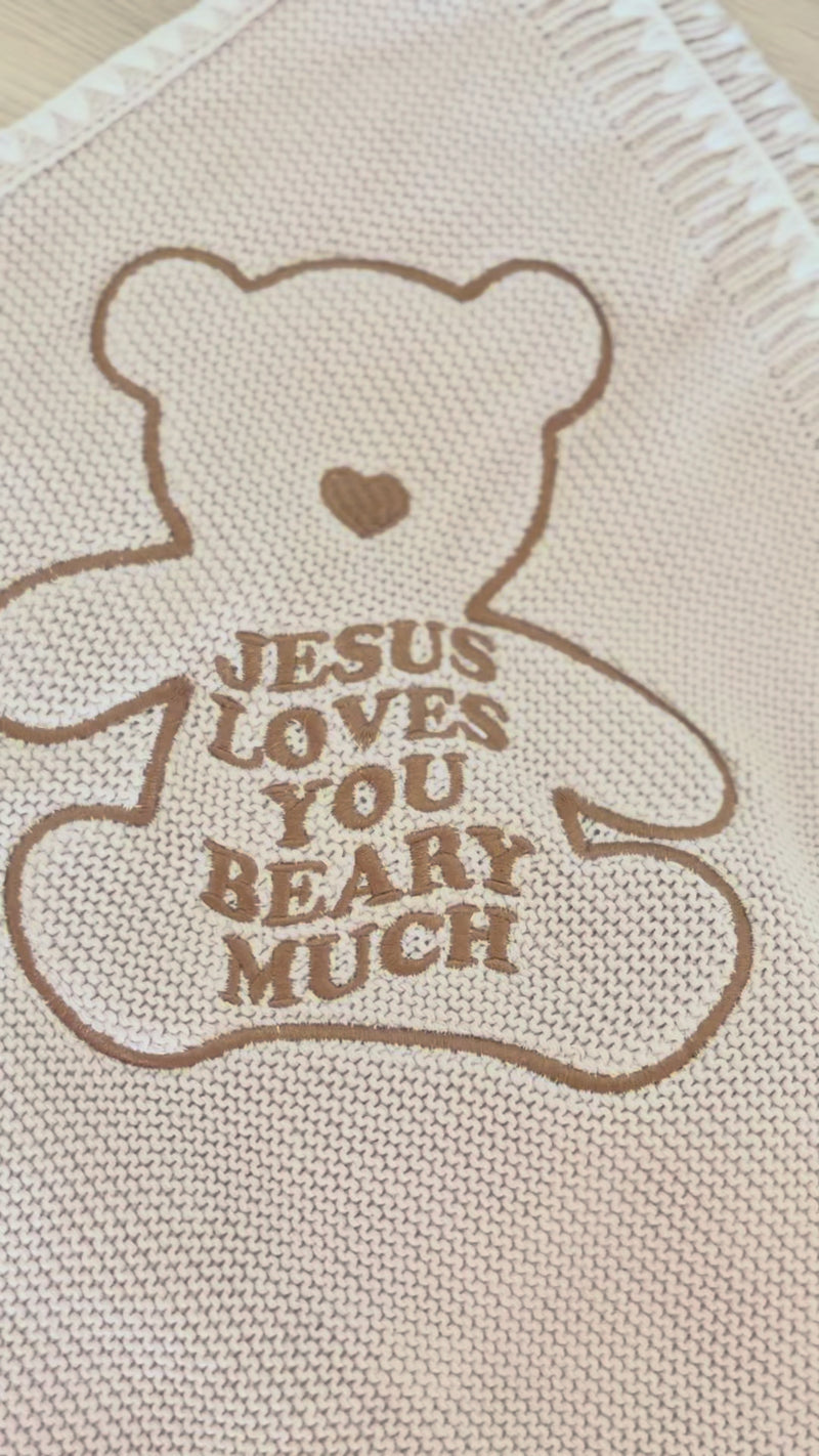 Jesus Loves You Beary Much Knit Blanket