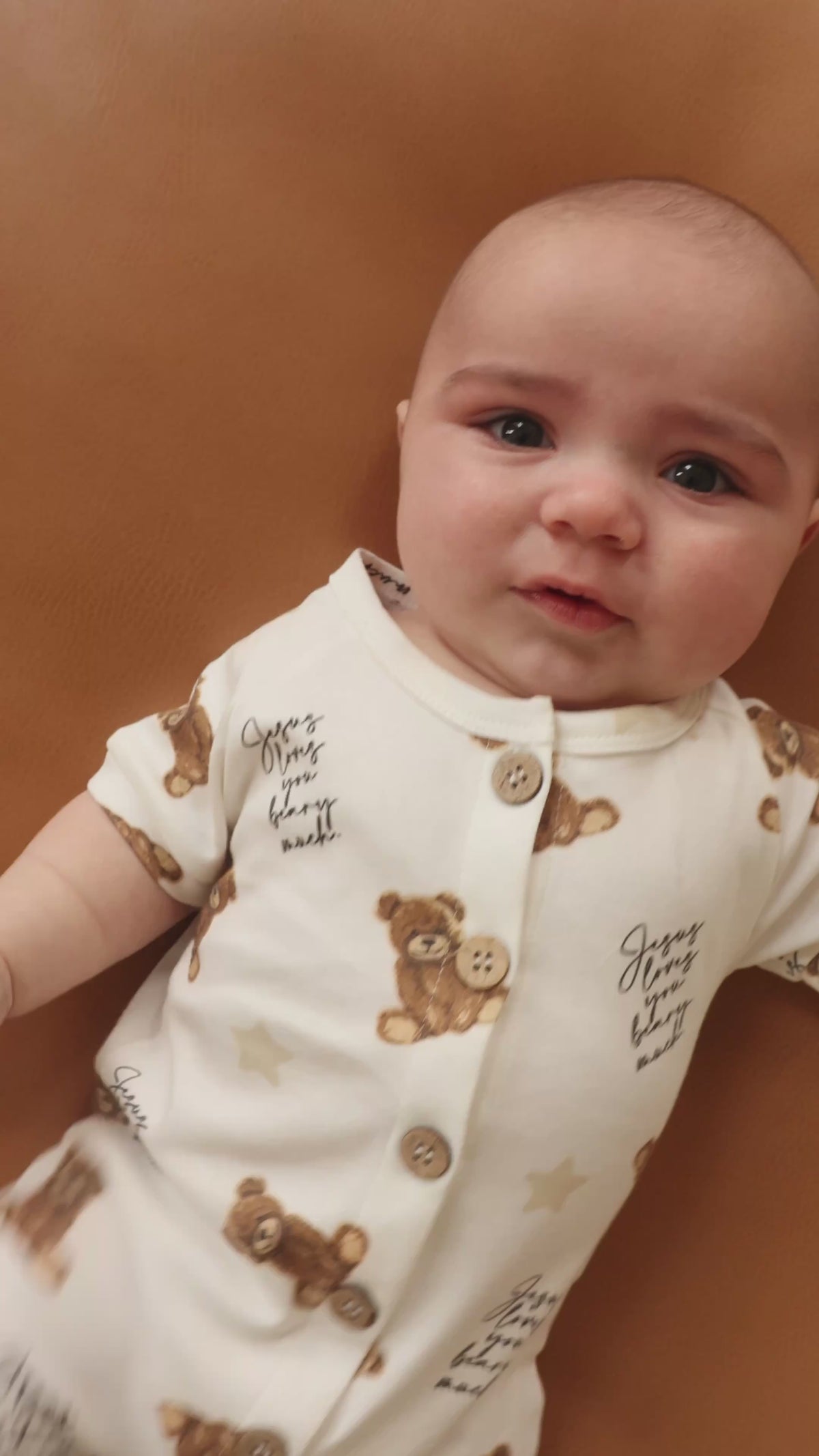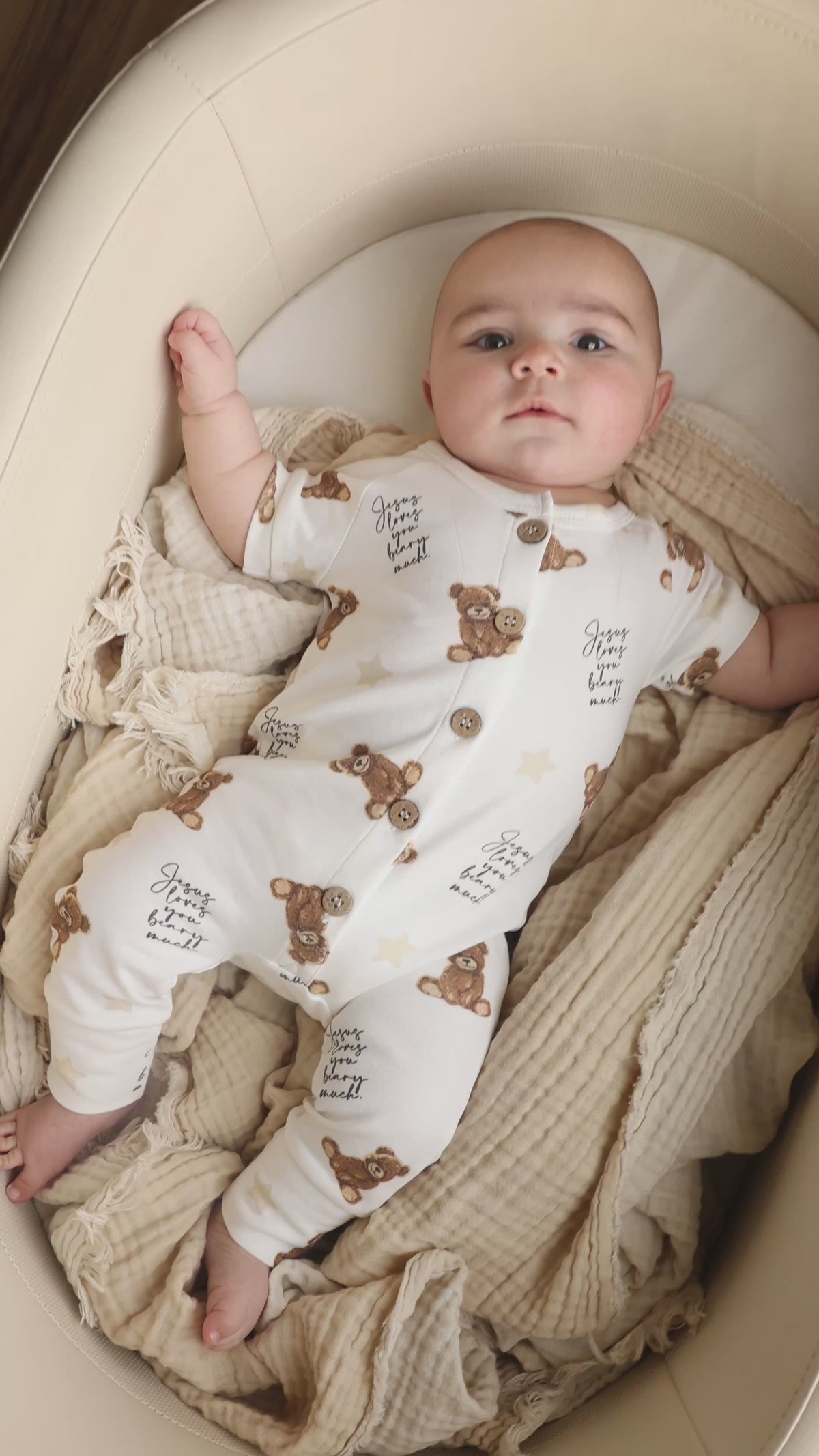 -Bear, Stars, and "JESUS LOVES YOU BEARY MUCH" all over print